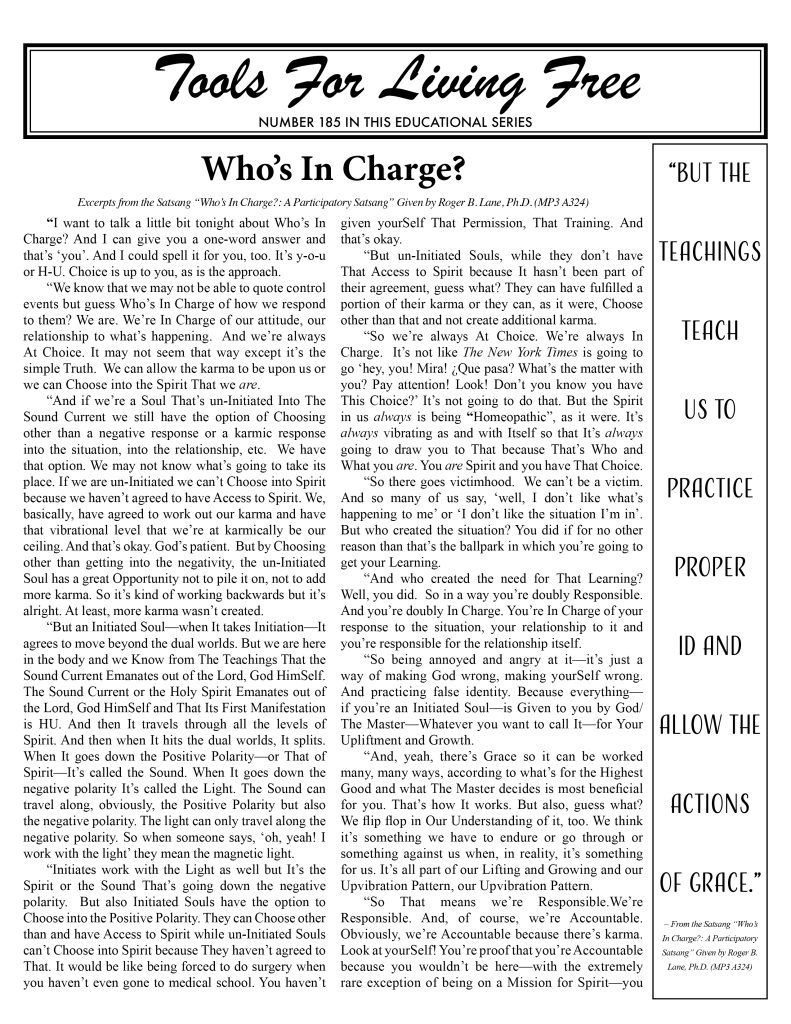 Tools For Living Free are FREE two-sided publications combining valuable excerpts from the Enlightening Monthly Talks given by Cosmos Tree Founder/Director Dr. Lane with short exercises that you can do during the day to help you be present; live more Joyously and Peacefully and, most importantly, focus into the Spirit you are and know that doing that is the Purpose of this life you’ve been given.